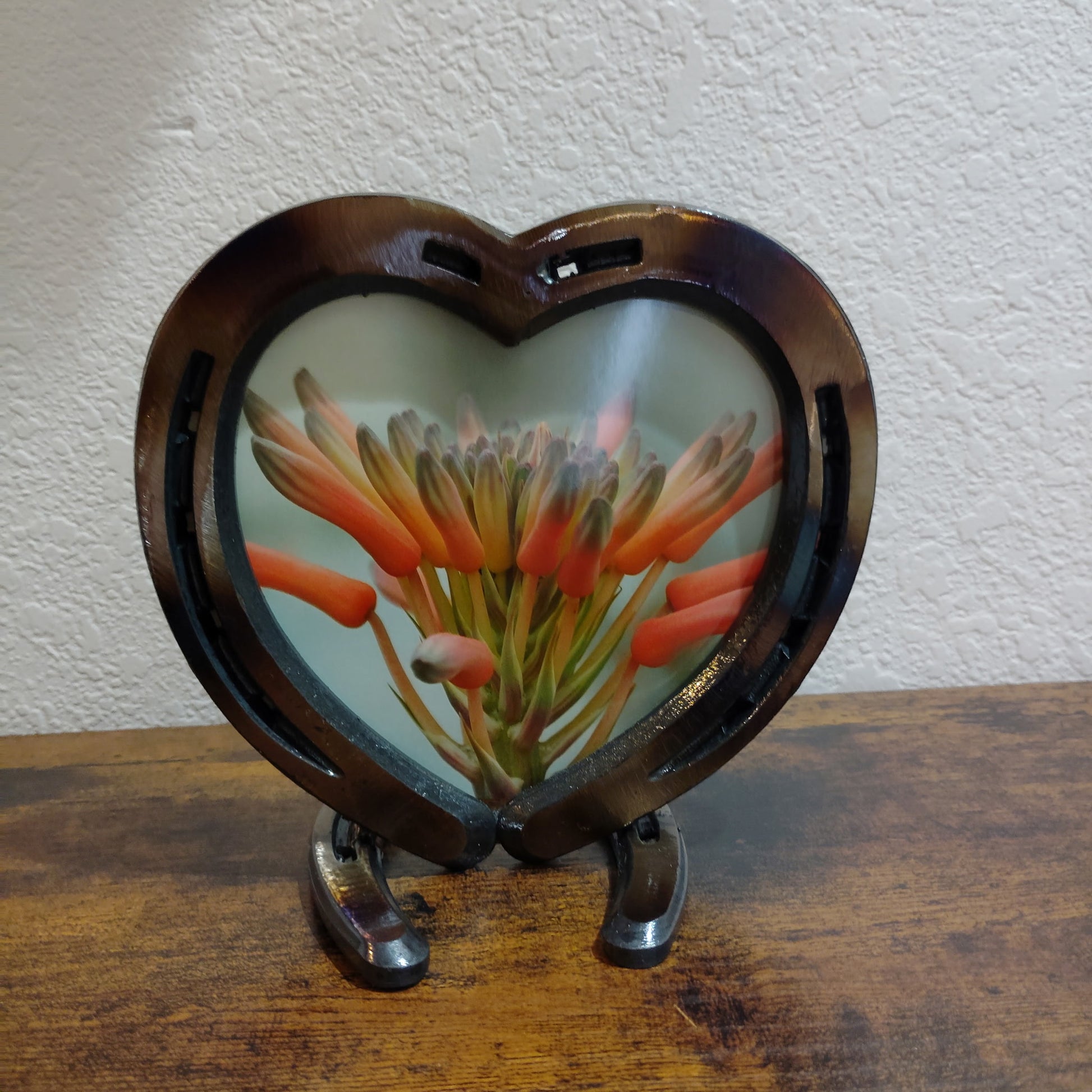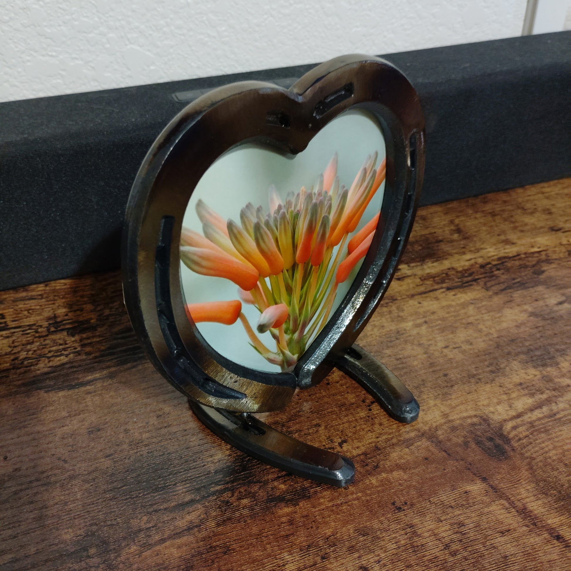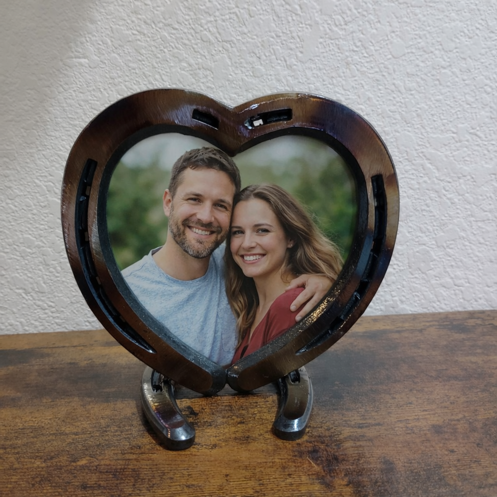 Celebrate love, new beginnings, and special moments with this handcrafted Horseshoe Heart Picture Frame, finished in a stunning Candy Apple Red high-gloss enamel. Made from real horseshoes and shaped into a heart, this unique frame blends rustic charm with a bold, romantic shine.